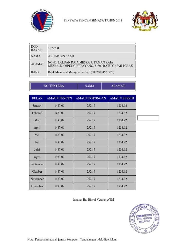 Sistem penyata gaji angkatan tentera malaysia jhev pencen 2021 penyata bayaran pencen.